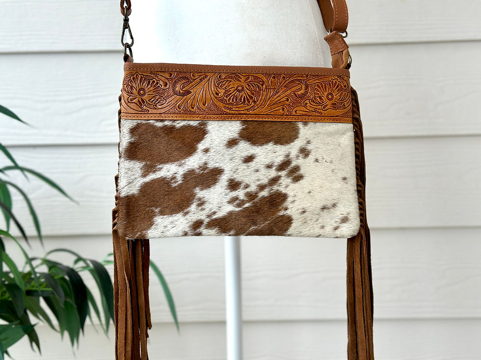 Western Crossbody Purse with Real Cowhide and Leather- Joann